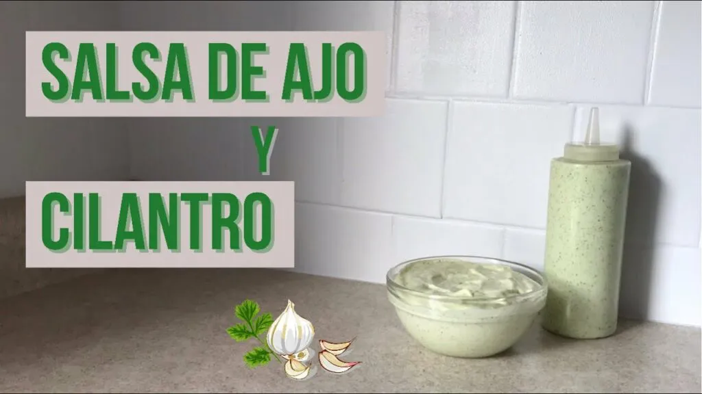 - La salsa de cilantro y ajo es una combinación de cilantro fresco, ajo picado, jugo de limón fresco, aceite de oliva y sal.